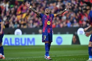 第62分钟替补上阵的拉菲尼亚本场比赛状态不佳,他出战半个小时,只有6次触球。球员数据如下:0射门、0过人、0关键传球、3传球100%成功率、2丢球权、0解围0拦截0抢断、2对抗0成功。
