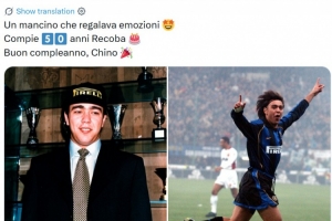 体育资讯3月17日讯 今天是“中国男孩”雷科巴50岁生日,国米官方也晒出球员旧照为其送上生日祝福。