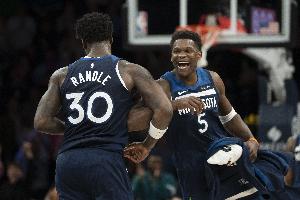此役过后,森林狼战绩来到37胜23负,以两个胜场差的优势领先湖人,稳坐西部第五!