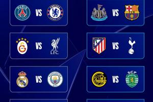 欧冠1/8决赛对阵:(种子队在后,先客后主)