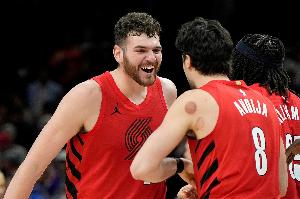 记者问:“你们很奢侈地拥有两名极具天赋的中锋,一个经验丰富,一个是表现更好的新人之一。当面对文班亚马这样的球员时,这对你们有什么帮助?”