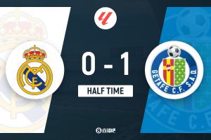 上半场补时6分钟。半场战罢,皇马0-1赫塔费。