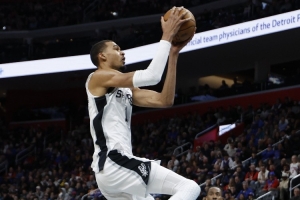 此役,文班亚马出战24分07秒,5投3中,三分1中1,罚球5中3,得到10分8篮板4助攻3抢断6盖帽,正负值+41。